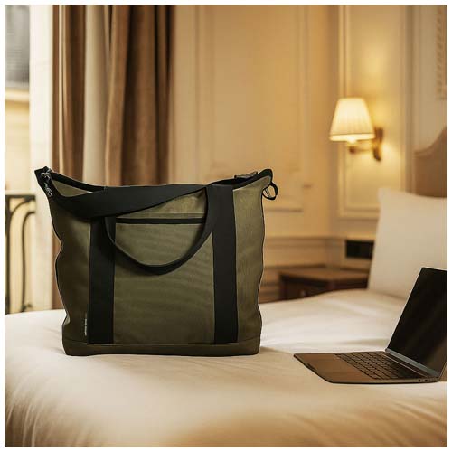 RING OSS PÅ 0771-66 66 00Resväskan Reway kombinerar hållbarhet med praktiska egenskaper i vardagen. En säker dragkedjeförslutning håller tillhörigheter skyddade, medan utsidan har en 19 × 11 cm dragkedjeförsedd ficka och en 21,5 × 26 cm påsydd ficka för snabb åtkomst till viktiga saker. På insidan finns en 25 × 15 cm stor ficka med dragkedja och en vadderad 34 × 24 cm påsydd ficka för organiserad förvaring. En justerbar axelrem samt vadderade sidor och botten gör den bekväm att bära. Resväskan Reway, som är tillverkad av 400 g/m² återvunnen polyestercanvas med ett foder av 190T återvunnen polyester, är ett snyggt och mer ansvarsfullt val. Storlek: 55 × 40 × 15 cm.