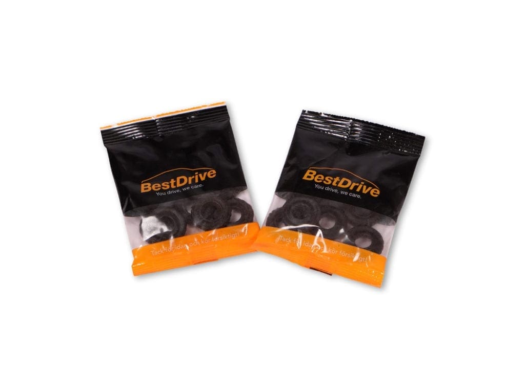 Tryck upp ditt budskap på godispåsar och välj det godis som passar med ditt varumärke bäst. Dela ut påsen på mässor och event och du kan vara säker på att mottagaren tar med sig ditt budskap hela vägen hem. Påsen är vit och trycks med fyrfärgstryck, för bästa bildresultat. Innehållet till Promo Bag har vi, som vanligt, valt ut med stor omsorg – allt för att förstärka den positiva upplevelsen i mötet med ditt varumärke. Påsens storlek har vi noga mätt ut, så att ditt budskap syns tydligt samtidigt som det passar att stoppa i fickan.