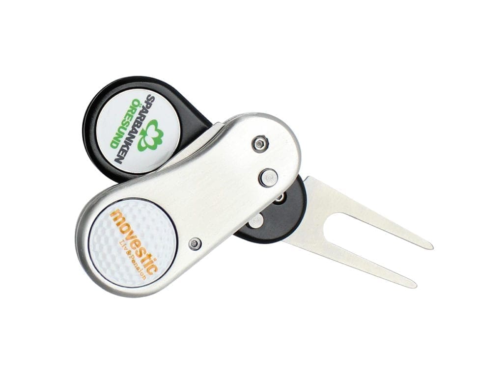 Rejäl greenlagare med tryck och stilettfunktion, helt i metall. Förädlas med tryck på markeringsknapp i metall. Leveranstid med tryck cirka två veckor. Har du bråttom? Ring oss för alternativ.