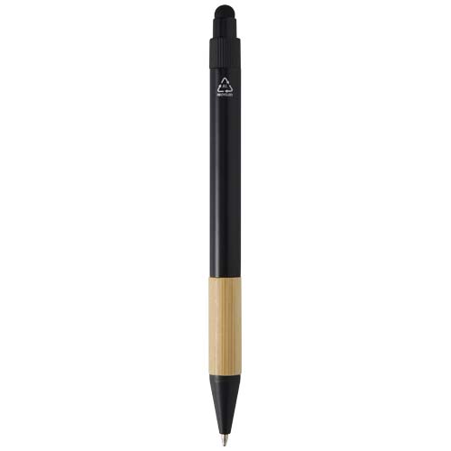 RING OSS PÅ 0771-66 66 00Gåvosetet Minka innehåller en kulspetspenna tillverkad av RCS-certifierad återvunnen aluminium med ett snyggt bambugrepp och stylusspets, en nyckelring i aluminium (5,5 × 1,8 × 1 cm) med bambudetaljer och en integrerad telefonhållare, samt en RFID-korthållare (9,7 × 6,2 × 1 cm) med en kropp i aluminiumlegering och bambudetaljer, som ger skydd för upp till 10 kort. Pennan innehåller svart bläck med en skrivlängd på 1 000 meter. En omtänksam och praktisk gåva som kombinerar funktionalitet med modern design. Levereras i en svart och förstklassig presentförpackning (16 × 16 × 2,7 cm) med slät framsida, perfekt för att lägga till en logotyp.
