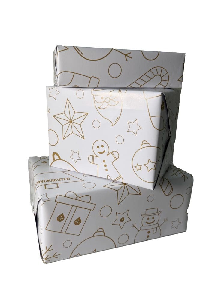 Tryck ditt omslagspapper hos oss. Vi trycker hela ytan i din unika design eller ladda upp er företagslogotyp eller liknande så repeterar vi den över hela ytan. Vi levererar högkvalitativt tryck på rulle i 100cm bredd, välj den längd du önskar (minst 200cm). Gör det lilla extra och slå in dina paket i en helt unik design!
